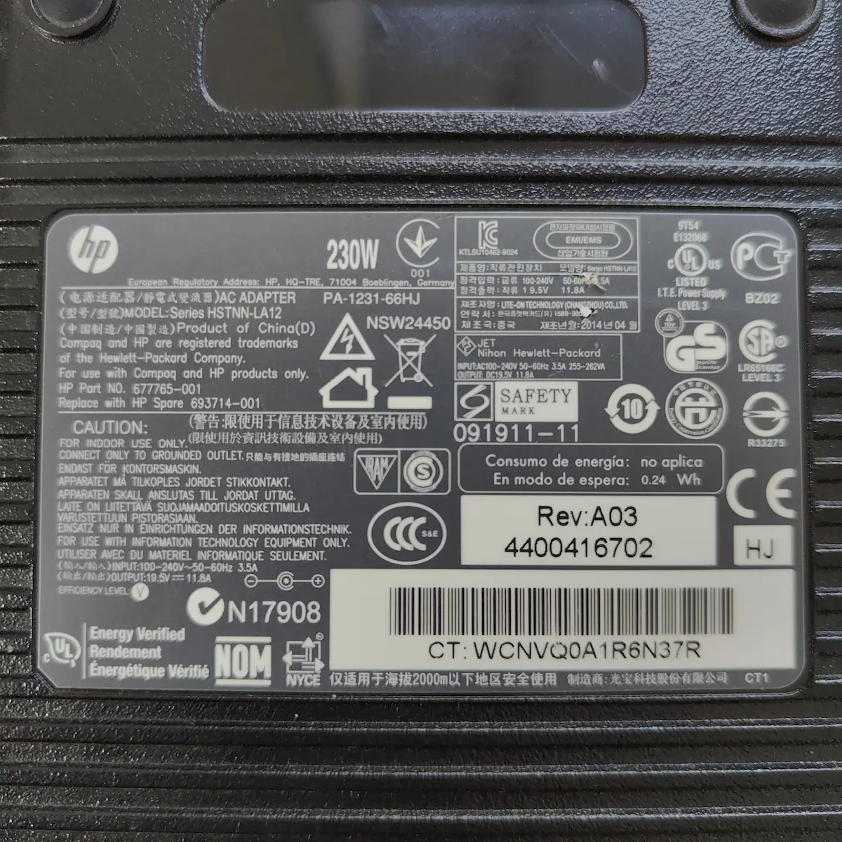 شارژر HP 230W یکی از قدرتمندترین آداپتورهای